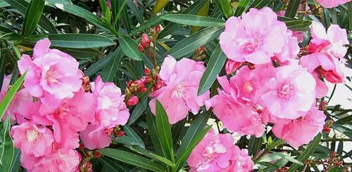 夹竹桃的花香能使人昏睡、智力降低。夹竹桃全株有毒,含有多种强心甙,是剧毒物质,对人的呼吸系统、消化系统危害极大,接触其分泌的乳液,也容易中毒,中毒后恶心呕吐、腹泻,可致命。所以,家里不宜摆放夹竹桃。