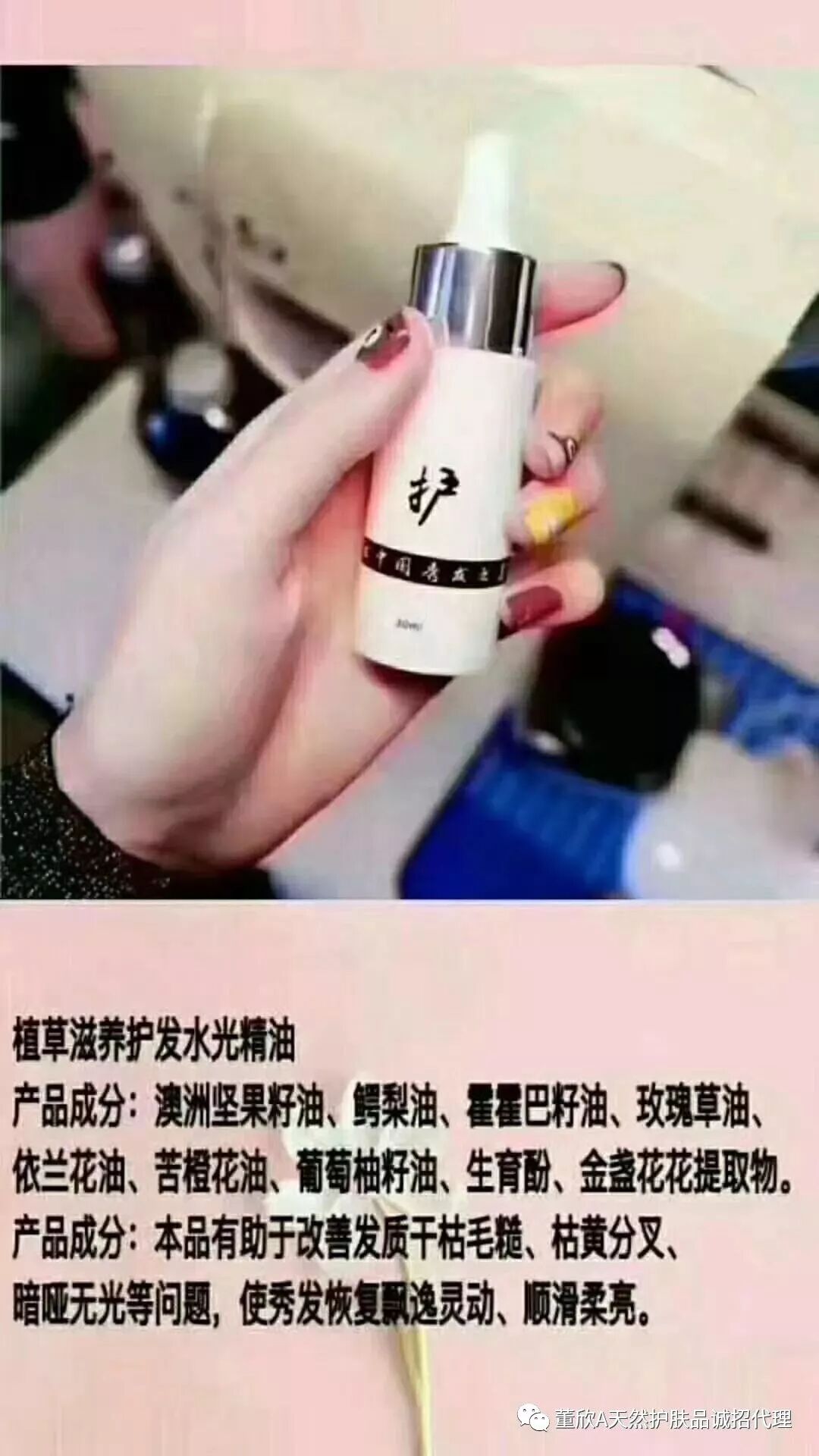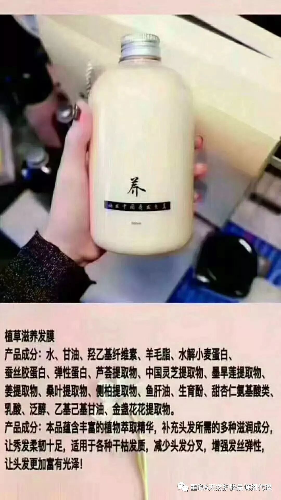 董欣的洗发水是九款中药熬制100个小时而成,是最健康的洗发护发产品