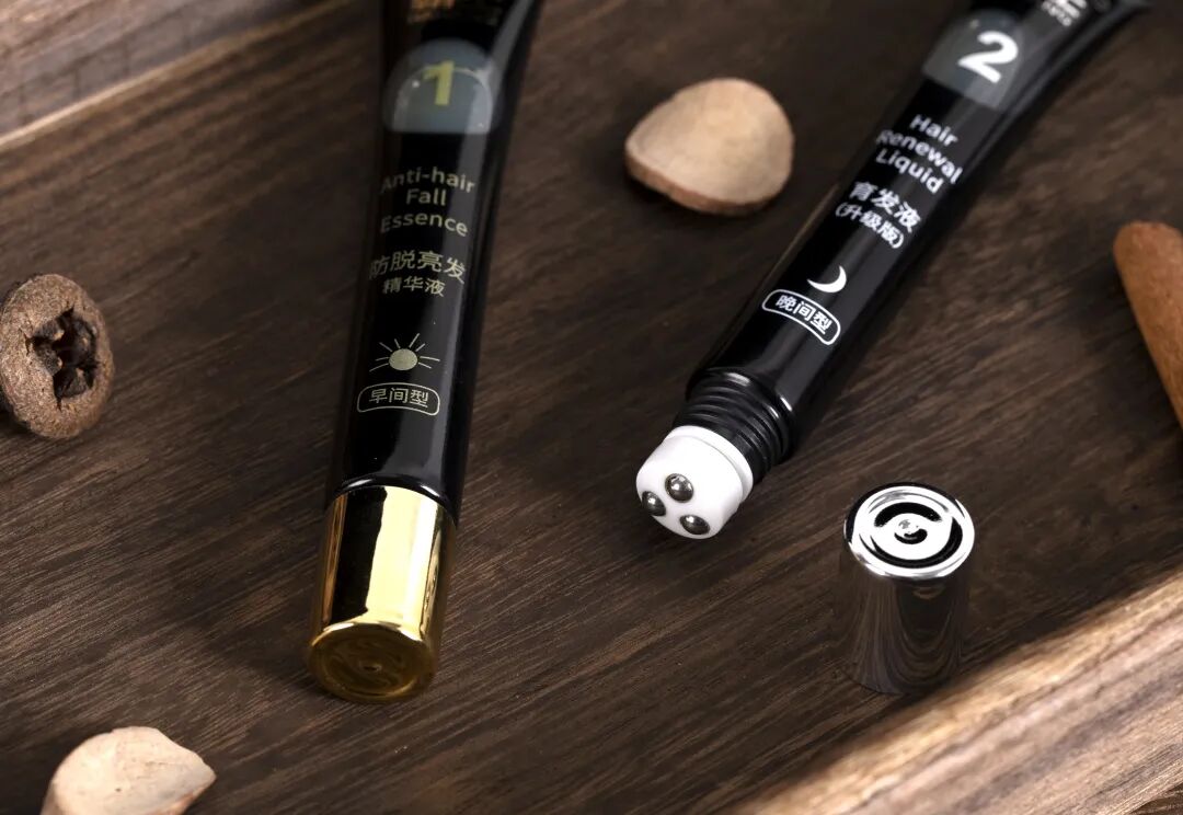 它和以往我们见过的头皮精华液不同的是,自带滚珠按摩器,一边涂抹发根,一边按摩吸收!