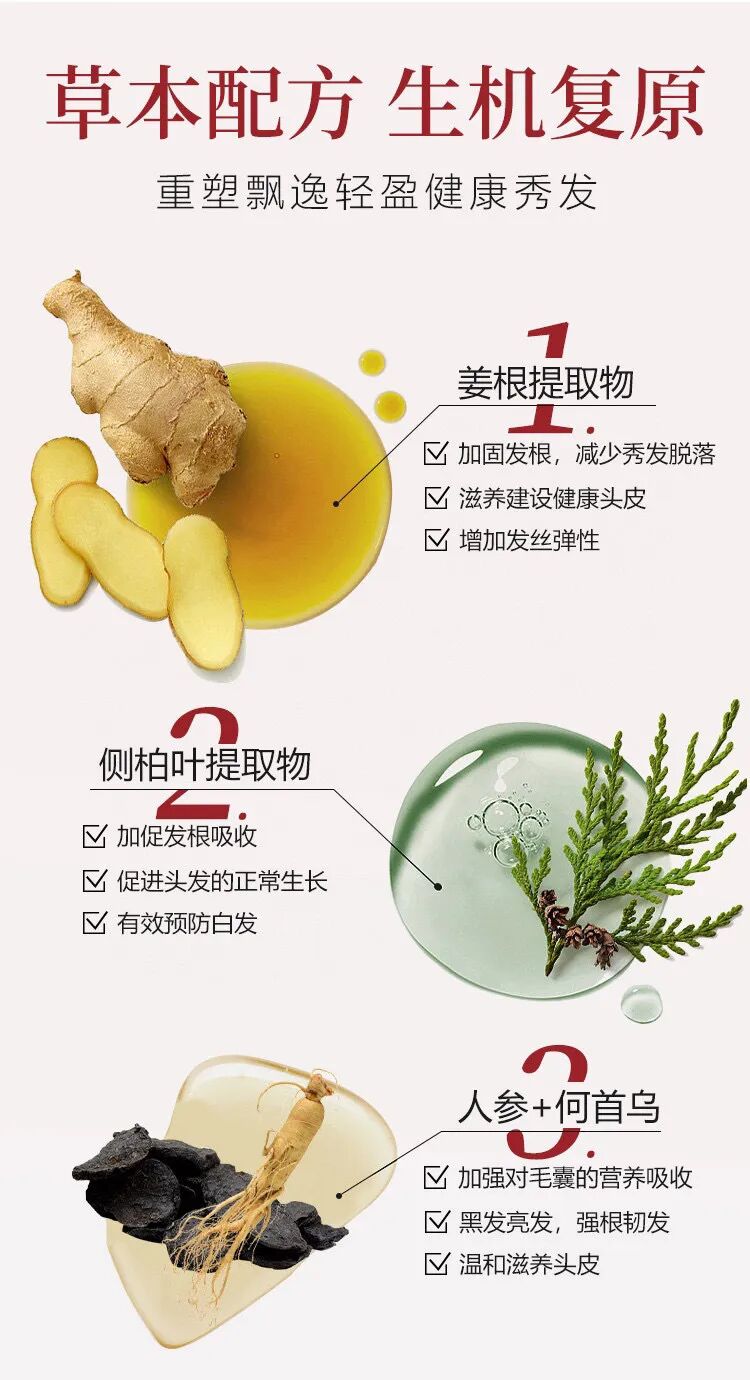 成分像是育发界巨头开会似的‼️ 侧柏叶+生姜+人参+何首乌 4⃣️重珍贵草本精粹! 光着几点硬核条件就可以 吊打市面99%的同类产品!