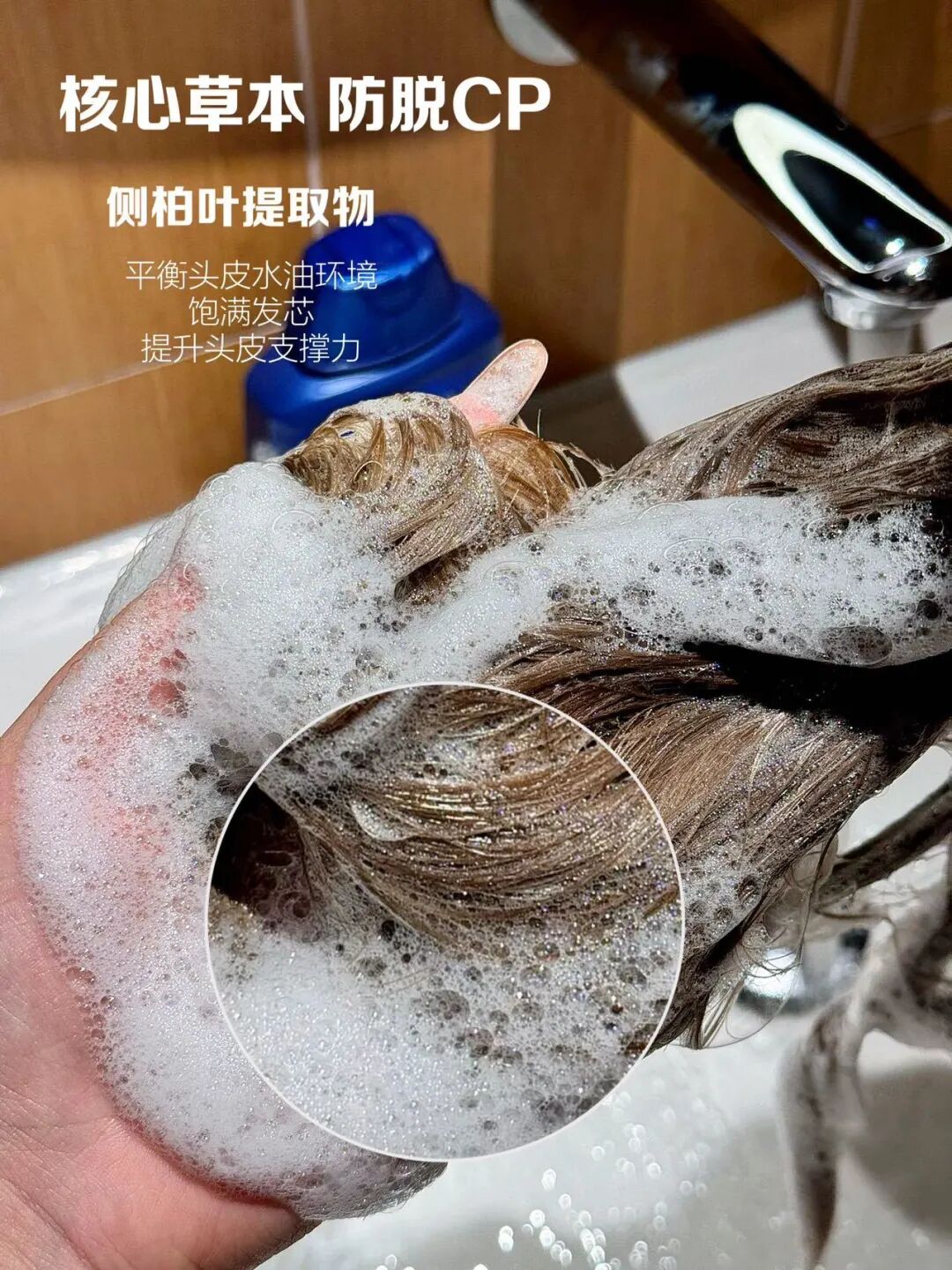现场洗个头给大家看一下即时效果👀 起泡能力很强👍只要一点点就能 揉出像奶油一样绵密的泡沫~ 用手揉一会,就能明显感觉到 头发越来越软!越来越柔顺!👯