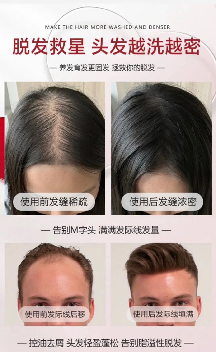 只要坚持用上一段时间 你的头皮环境、毛囊状况、 脱发问题都会有非常好的改善!