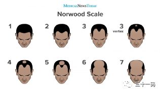 国际上把脂溢性脱发按程度分了7个级别见下图。
