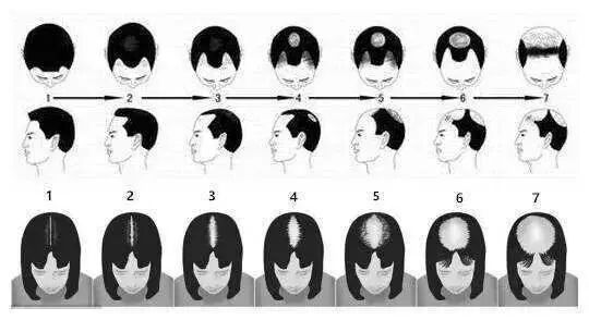 👨男性常见的表现:地中海脱发、m型发际线后移。