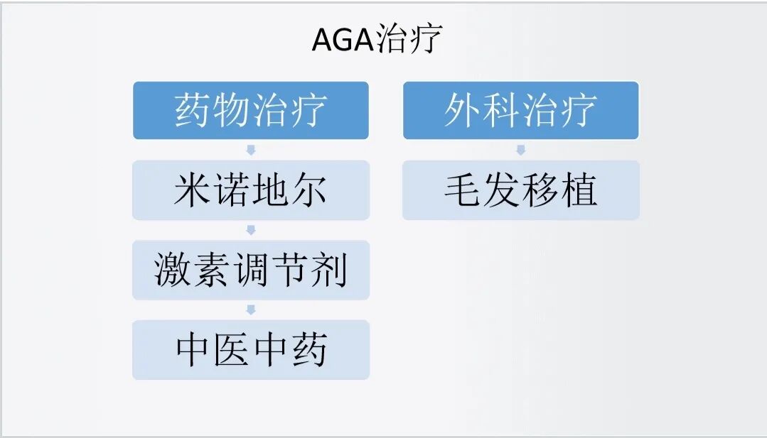 AGA是一种非瘢痕性脱发,表现为进行性头发直径的变细、头发密度的降低和脱发,直至出现不同程度的秃发,通常伴有头皮油脂分泌增多的症状。