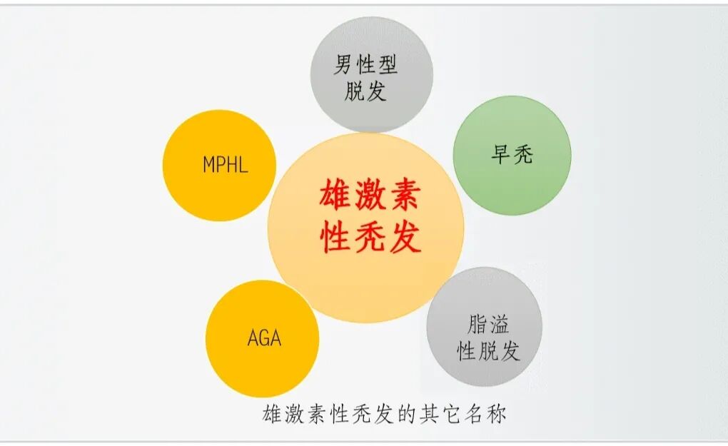 雄激素性脱发是从发病原因对该疾病进行的命名,如AGA、雄激素性秃发、脂溢性脱发、脂溢性秃发、早秃、女性雄性秃等,长期以来诊断名词的不同对患者甚至医师都造成了非常大的困惑。