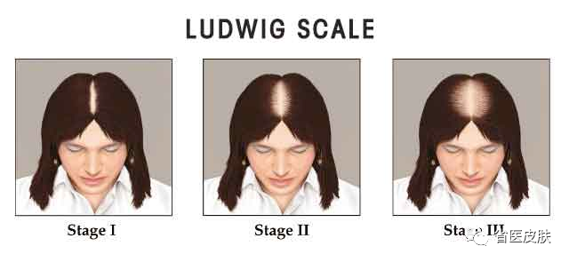 女性AGA常用的分期标准由Ludwig在1977年建立,根据脱发的严重程度,原来将女性AGA分为3级,该法虽然易于记忆,但分类过于简单,在临床中不方便使用。