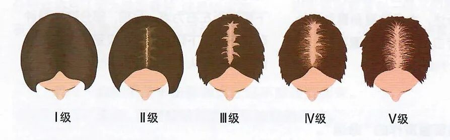 有一种细化的女性雄激素性脱发的分级标准,这一标准通过脱发区域中央部分的宽度分为5级: