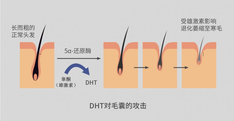 雄激素性脱发,也称脂溢性脱发(AGA),是一种最常见的脱发类型,是起始于青春期或青春后期的一种进行性毛囊微小化的脱发疾病。男女均可患病,在我国男性患病率约为21.3%,女性患病率约为6%。