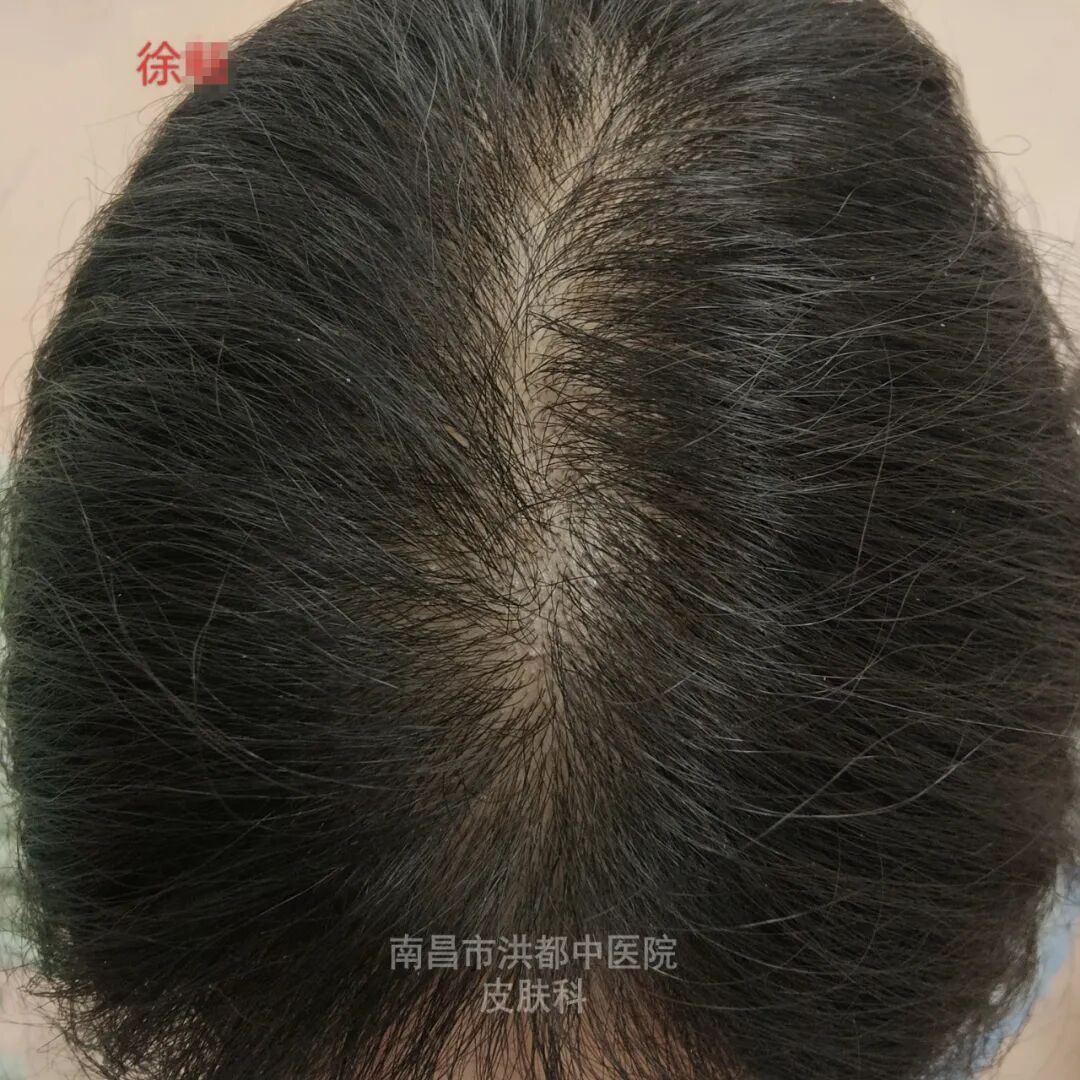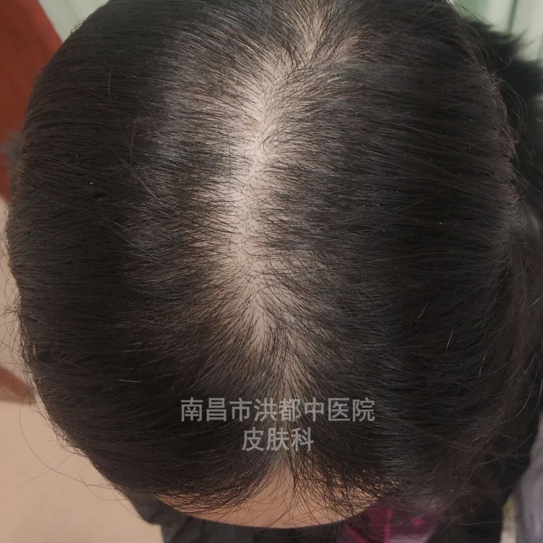 35岁的徐女士,5年前因熬夜、压力大出现脱发,发缝明显增宽。为了缓解脱发,徐女士曾自行间断涂抹米诺地尔治疗,未见明显疗效,脱发逐渐加重。每次照镜子梳头时,看着自己的头发日渐稀疏,徐女士就情绪烦躁、心情郁闷,心理压力巨大。于是,她来到南昌市洪都中医院皮肤科诊治,希望能得到改善和控制。