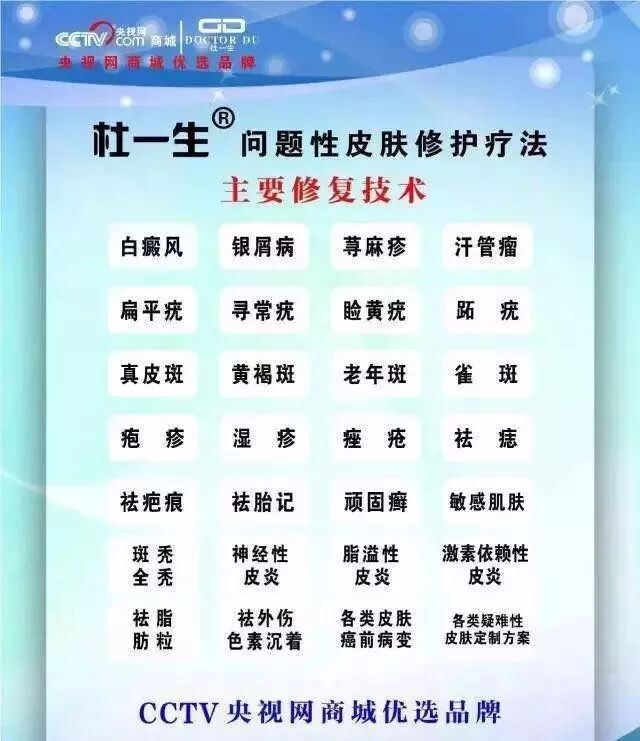 四川省杜一生生物医药科技有限公司源于杜氏医学世家,其问题性皮肤修复疗法在经历几代改良后,将中西医完美结合。以安全、高效、无创无痛等特点享誉业界。四川省杜一生生物医药科技有限公司坐落于四川省成都市环球中心并在广州建立了GMP标准自有工厂公司依托专业医学背景,在本着为更多皮肤病患者及爱美人士解除疾苦的良好夙愿下成立杜一生修复疗法临床应用18年,为超过60万皮肤病患者及爱美人士解决疾苦和完成肌肤美丽蜕变! 如果您要咨询加盟可拨打热线028-66332526