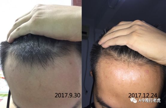 大约3个月后,额角的绒毛长成头发,也很少脱发了,头顶当时恢复得还不是很好。那个时候在贴吧也火了一把。那个时候内心已经平静很多了,我一直都是一个喜欢钻牛角尖的人,找到一把难题的钥匙过程是曲折而快乐的,幸运的是没有感受到副作用,终于还是得救了。