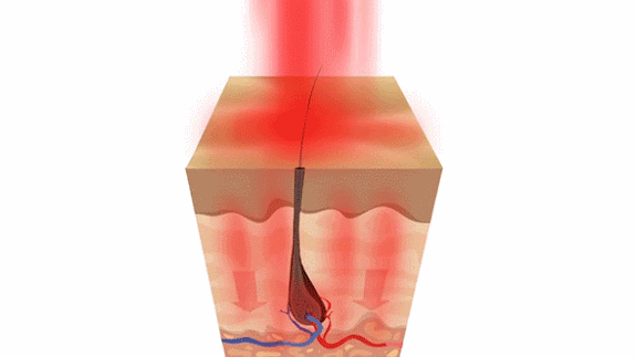 通过波长为670nm的弱激光照射头皮,从而达到唤醒毛囊的效果,原理同生姜擦头皮相似,但不同的是雄脱患者也可通过此种方法来恢复满头浓密。