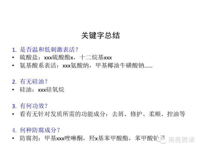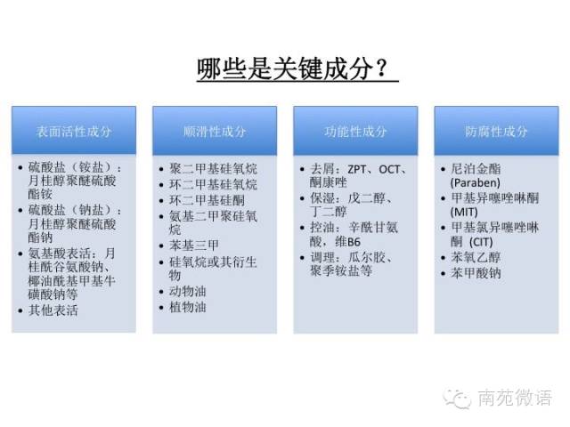 听了这么多,是不是觉得洗发水的组成还是挺复杂?那我再简单的为大家做一个提炼。