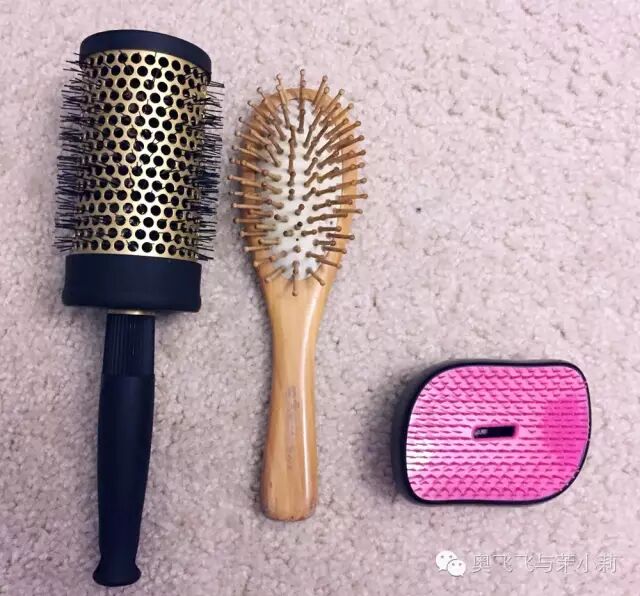 梳子的话我是有三把在用,谭木匠的气垫梳主要是睡前和早上拿来按摩头皮疏通经络,欧莱雅的这把滚梳很好用,不起静电也很透风,适合搭配吹风机。边上的小粉红就是从外面回家头发很乱,怕拽掉头发的时候用这把,梳完整个头毛软软的,也不会掉头发。
