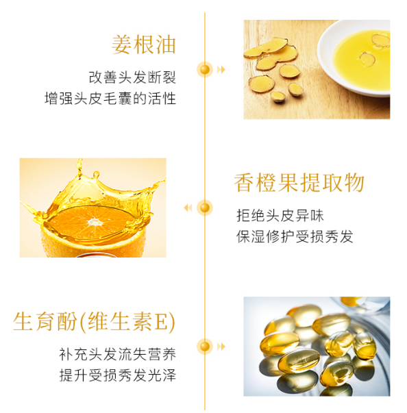 基础的三大成分之外,它还添加了姜根油、香橙果提取物、维生素E。