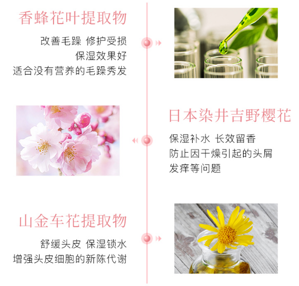 因为它有薄荷、玫瑰、樱花、柚子4种选择,针对不同发质使用!