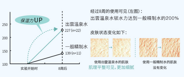 这里的温泉水有着弱碱性,质地温和,蕴含丰富的纯天然矿物质,它的锁水力是一般精制水的2倍!