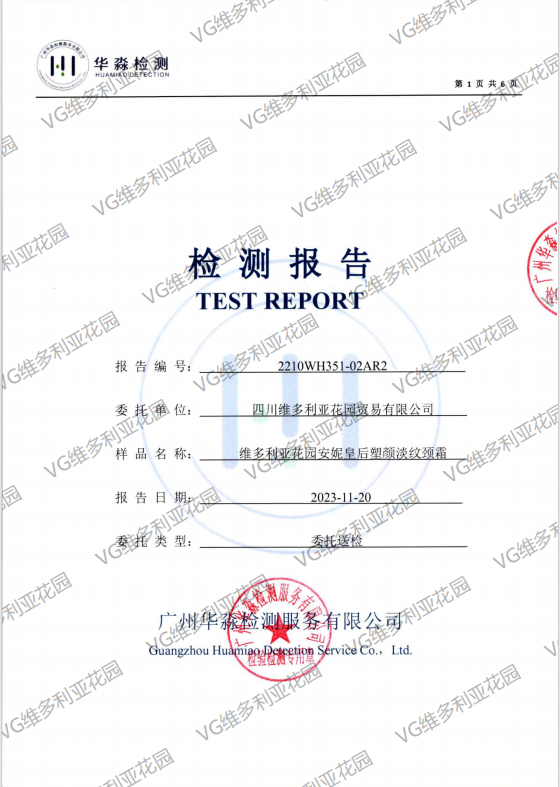 ▲颈霜抗皱功效鉴定书
