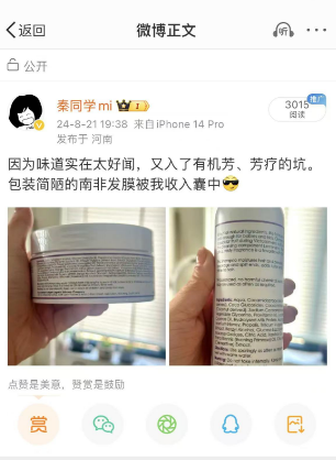 这款更适合干性发质,有干痒、紧绷、断发、毛躁分叉问题的姐妹,主打一个深层滋养,非常适合现在秋冬季节。