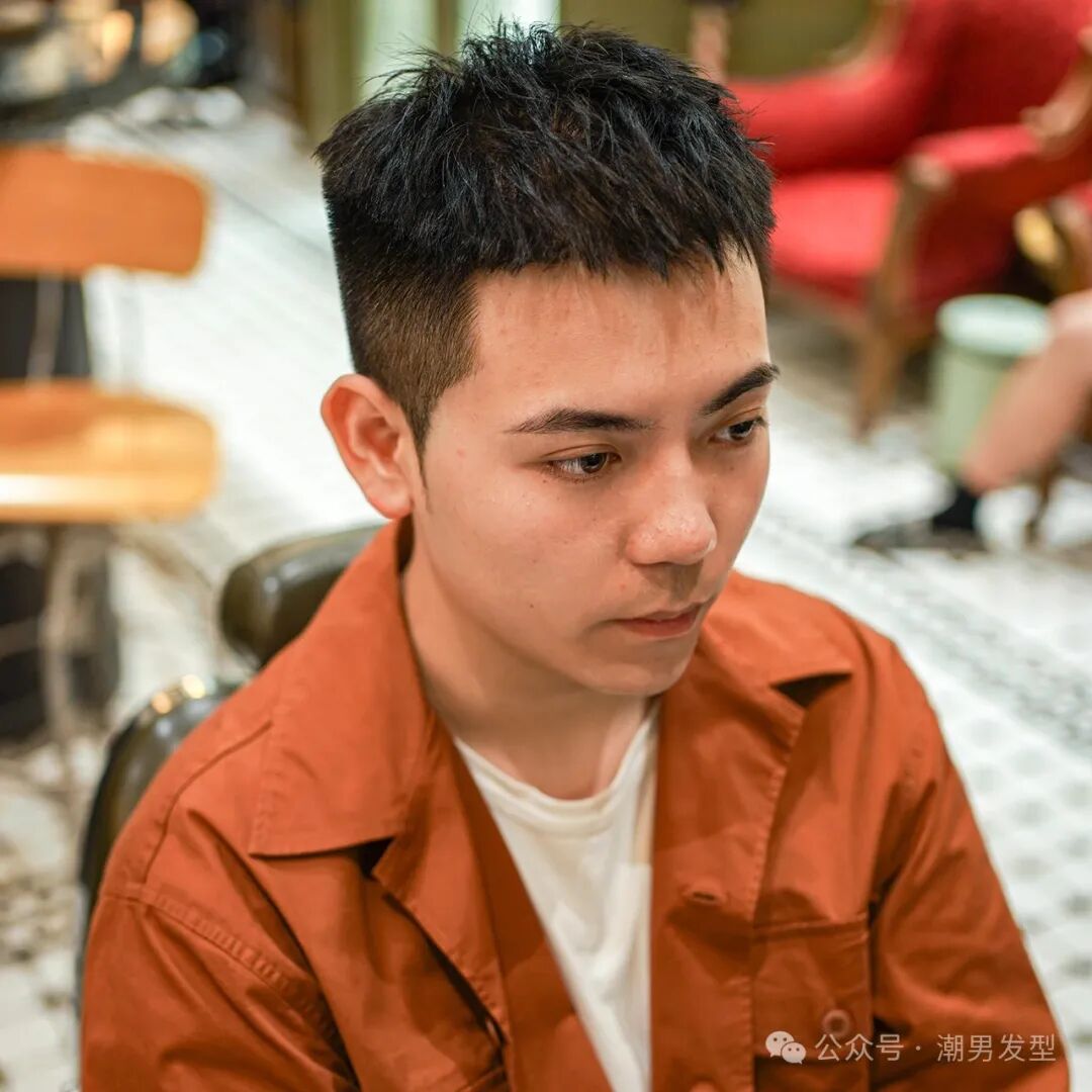 不知道大家有没有发现,不管是发质细软还是粗硬,剪短发都很合适,很有精气神,而且也不用花太多时间去打理,特别是发质粗硬的男生,可以试试这种狗啃式短刘海发型,两边的头发渐层铲短,鬓角简单修缮一番,顶区的头发及刘海保留一定的长度,再把刘海修剪出一些弧度,而且剪出些不规则的狗啃式效果,这样整个造型看起来特别阳刚帅气,而且打理起来也特别简单,赶快试试吧!