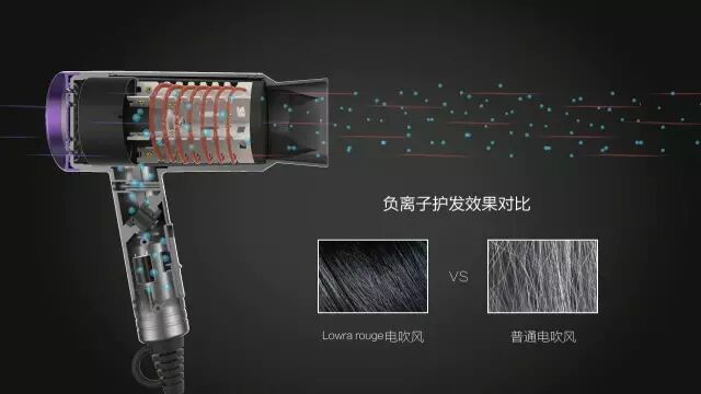 负离子大家应该都很熟悉,它主要的作用是一旦被发丝吸附,就能渗透至发芯,同时,在发丝表面形成水分保护层,牢牢锁住发丝内的水分,倍增头发的光泽度,使头发更柔顺光滑。