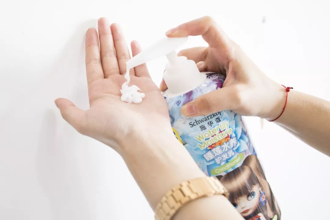轻轻的抹在秀发上!这个时候也可以叫小伙伴帮你噢,上色均匀些。