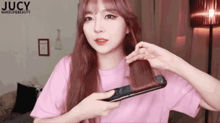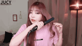 Step3:再用卷发棒的直板夹压一下头发,让中间的卷度不要那么弯,但千万不要带到尾部,这是打造自然微卷的重点哦!