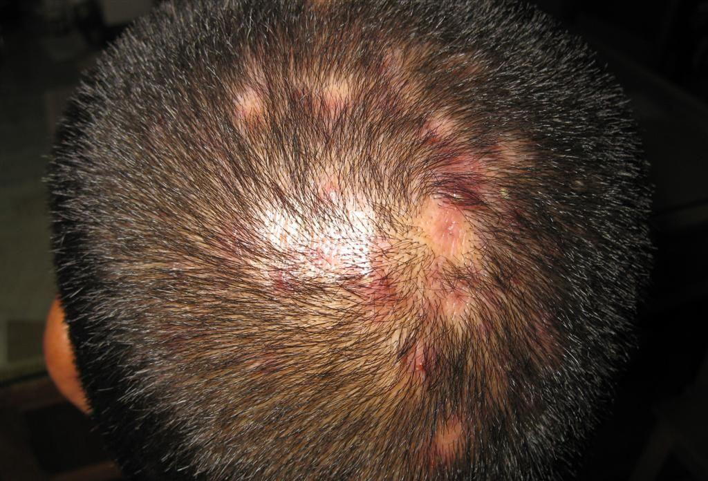 ▷ 毛囊炎引起的秃发示例