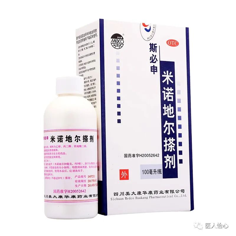 米诺地尔是第一个被发现有促进毛发生长作用的制剂。它是哌啶嘧啶衍生物,起初作为抗高血压的口服药。由于用药者出现了多毛的不良反应,因此开发了米诺地尔溶液局部外用治疗脱发。美国FDA于1988年批准2%米诺地尔溶液用于治疗男性脱发,1997年又批准5%米诺地尔溶液。