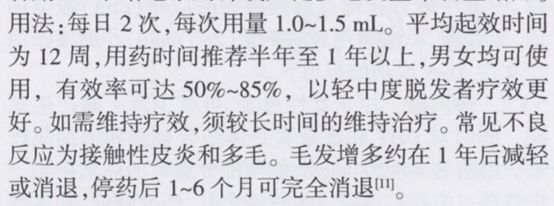 但是,就是这样一款药物,有一个令人困扰的问题:见效慢。而且它也并非100%有效,根据《中国雄激素性脱发诊疗指南》给出的数据,坚持使用半年至一年,有效率可以达到50~85%: