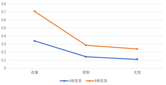 从图中我们可以明确的看到,不管是检测4根毛发还是8根毛发,磺基转移酶的活性越低,米诺地尔的有效率也就越低。