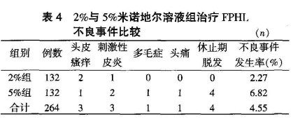 从副作用方面来看,浓度更高的5%不良事件发生率也相对更高,这也说明浓度越高副作用就越大。但这一结果的前提就是,5%浓度和2%浓度都是经过美国FDA批准使用的标准浓度,它们的副作用都是在可控及安全的范围内。