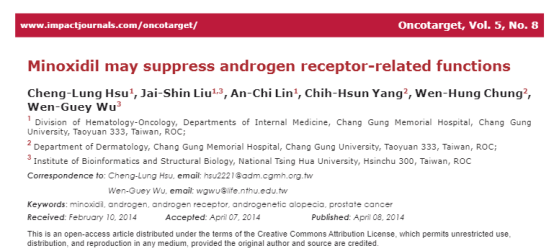 相关文献:Minoxidil may suppress androgen receptor-related functions.