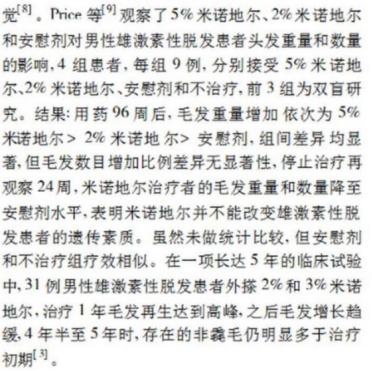 最后还有一点是这次的统计没有出现的,也是不常提到的,就是依赖性。米诺地尔本身是没有依赖性的,但是因为有些脱发病症比如雄激素脱发不可以被治愈,只能是靠药物维持的。美国生产的米诺地尔包装上就写着,可能在用药结束后复脱,让大家坚持使用。