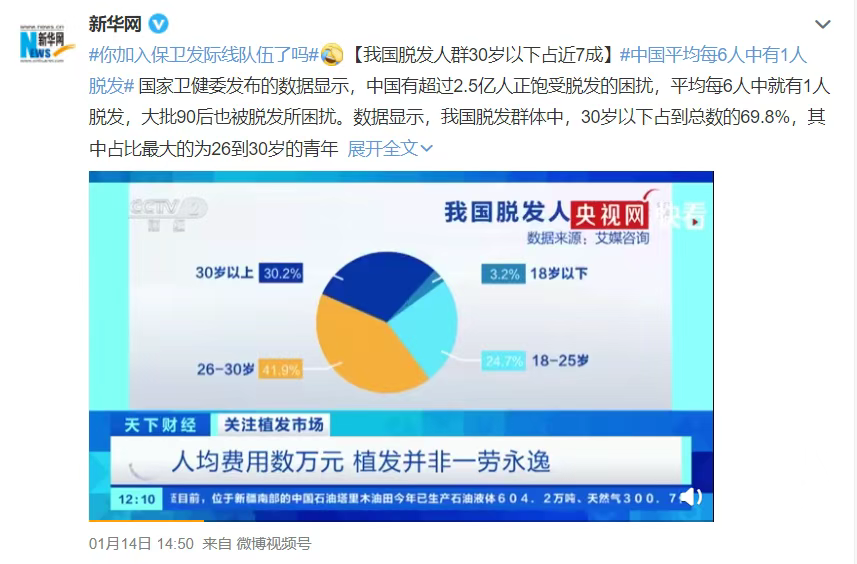 看到这个数据,脱发中的你有没有实实在在被安慰到,脱发的路上你不是孤单一人。